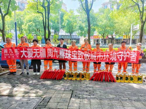 值此酷暑之际,周九喜珠宝湘潭岳塘区各门店组织开展一场温馨的慰问活动。向辛勤工作在一线的环卫工人,送去最真挚的关怀和慰问。